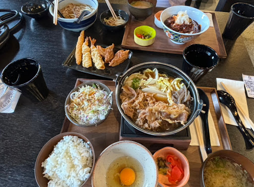 Ordered the udon, some fried chicken and tempura shrimps, sukiyaki, and hambagu. The first hambagu we received was undercooked due to a kitchen mistake, but the staff sorted it out quickly, offering us a new one with some extra food such as onigiri.