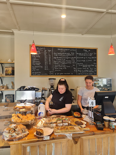If you're on the Rail Trail, COME HERE! Stopped in while passing for the kids to have a snack and toilet break - friendly staff and everything is great : they have cosy tables, a book shelf to borrow from, and a roaring fire. 1 delectable chocolate hazelnut tart, 1 flaky gooey ham and cheese croissant, 1 almond cake, 2 hot choccys and 2 great flat whites later... And the floor of the loo is cute!