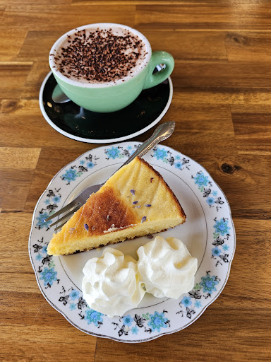 If you're on the Rail Trail, COME HERE! Stopped in while passing for the kids to have a snack and toilet break - friendly staff and everything is great : they have cosy tables, a book shelf to borrow from, and a roaring fire. 1 delectable chocolate hazelnut tart, 1 flaky gooey ham and cheese croissant, 1 almond cake, 2 hot choccys and 2 great flat whites later... And the floor of the loo is cute!