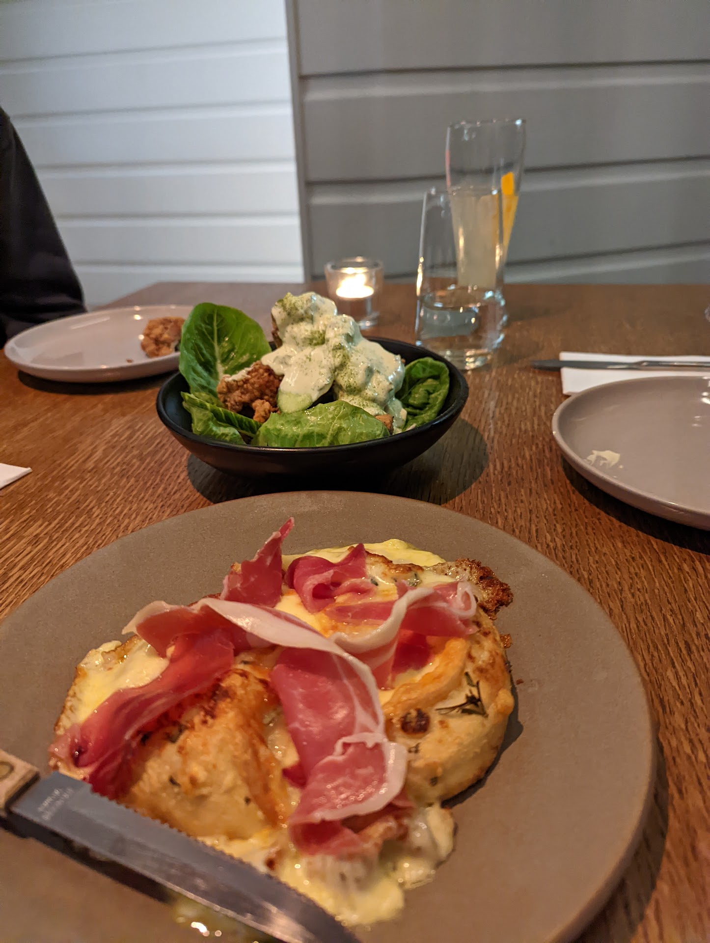Really had a nice time... I've got the gnocchi, the green salad, smoked kahawai, the salad of the day courgette flower and for dessert the strawberry coconut yoghurt and rhubarb. Gnocchi was good but could have been done better, searing the gnocchi or maybe searing the asparagus, cause at the end, everything was just boiled and was missing some texture or technique to kick up the flavour. That would have bring the wow effect that I'm looking when I go eat somewhere. The green salad, got my attention because there are nectarine in the menu description... Unfortunately, they are so finely sliced, you don't get the flavour of them and wedges would have been more than welcome. I would suggest to even grilled them to empower they flavour into the dish. The smoked kahawai was missing the balance of all the ingredients together. Very powerful fish taste and smell, you need to find the right balance to combine everything that goes with to make a party into your pallet. Wasn't my favorite one. The courgette salad, was really really nice, the combinaison of the dressing with the raisin, the zucchini and the battered courgette flower was stunning. Really enjoyed that one. For dessert, the sundae was missing the sweetness of the strawberries, same for the rhubarb and the coconut yogurt made the dessert too heavy. You want some sweet at the end of a meal to get the sensory satiety, which brings you the feeling of satisfaction. Don't get me wrong about the food, it was good, but I feel like they are very close to excell... Our waitress was such a lovely and incredible person, very calm, polite, smiling, always attentive about our needs, can tell that she gets the essence of...