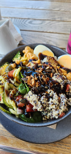 Am a visitor and can see by reviews this is a pretty new place. I think it's still feeling its way and so deserves support even if things are not there just yet. There are not enough of these types of cafes around, where you can get a more than halfway healthy lunch that isn't dying under an oil or sugar waterfall. And the food was certainly good. The pumpkin kale salad was dressed nicely, with tomato, red onion and pepitas. The cheese and onion muffin was perfectly cooked and seasoned - delish with butter and warmed well. The kombucha and natural soda options were great. I also bought a number of natural products that were all Kiwi made. The co-owner was nice to talk to maybe a little stressed with everything it takes to get things up and running. I didn't try the coffee (sadly I'm taking a long break just because) but I think it might have improved since the poor review from a month ago as there were several female staff/baristas now. The loss of the star was because one of them seemed quietly impatient with my dithering over my lunch selection even though I apologised - no acknowledgement or expression. I look forward to returning one day and finding this cafe/natural products shop 'the place to go' in Whitianga and awarding...