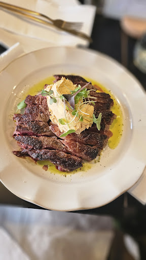 Between 5 of us we ordered tostada crudo trevally dish, this was outstanding. It was so fresh, with a horseradish type sauce, plenty of capers, oil and fresh basil - 10/10 definitely my favourite dish! (Although they were all outstanding!), Sourdough with everything butter, and whipped feta, with delicious olives and more sourdough, chicken tacos, eye filet - rare and prefectly cooked with a herb butter, and of course fries with truffle mayo. All of it was wholesome, simple but really well done with fine fresh seasonal produce.