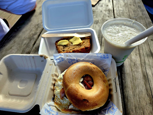 Ā Ā Ā Read moreThis location was just an 8 mins from our stay at the church. We ate here twice out of our 3 day stay. I highly recommend stopping by for breakfast over any other spot. I left thinking about how good my bagel, egg, hash brown and bacon Sammie was. Perks of the atmosphere were seeing all the visiting pups and local birds. The birds didnt swoop or try and steal our food. We dubbed the pictured red bill gull no neck ned he was a chill little visitor. 10/10 try...