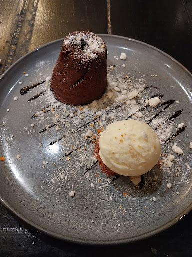 The desert: I had a chocolate fondant. The part around was ok, but not to the level of what my partner is able to make. And as usual in NZ, to save money I guess, when you expect to get chocolate taste, you get mostly cocoa. Then, the fondant part was... interesting/weird. Chocolate and gin! I like the idea, but it doesn't go together.
