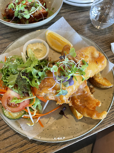 We started off with a couple smoothies, which didn’t disappoint and ordered 3 dishes between the two of us. The fish and chips were outstanding - clean, crunchy batter with light, perfectly cooked fish in the middle. I would’ve like a bit more sea salt on top but that’s just personal preference (and a few more chips - too light on the chips guys!). The optional side salad actually enhanced the dish nicely, instead of just being added on the side for “greenery”.