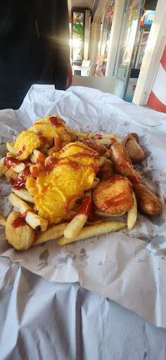 Read moreWe found it on the side of the road. Very popular, people were in and out the whole hour we had stopped over. Its expensive but im not suprised being a small store. The service was really chill and relaxed, outdoor seating, beautiful weather. We even got free tomato sauce which i felt was a bonus. Burgers are fresh, fried muscles were not nice at all. I added my fish and scallop to my burger. Hit the spot. The guy serving us 10/10...