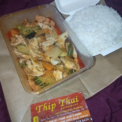 Got a takeaway meal for my wife and I recently from Thip Thai.Not got a takeaway from them for a while. Usually very good food. However, it was disappointing this time. We wanted mild to medium but we got what I'm sure was at least medium. Spoiled our enjoyment of our meal, burnt our mouth and tougue. My wife got a Satay Gai appetizer, which was okay but the peanut sauce supplied with it was minimal.Only one small plastic pot of sauce provided, should have been at least two. But why not just apply the sauce...
