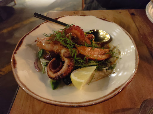 Been a while since, and while the service is relatively attentive, I was kind of bothered being served what seem to be a “white wine” glass when we ordered a bottle of red (we referenced other table’s red wine glasses!). We were so looking forward to reminiscing what we had in Portugal/Spain and so it didn’t live up to it- Charcoal grilled octopus comes with a few rings of calamari in the plate… not sure what’s the point?! Is it to fill up the plate or fool the customers ?! What’s your intention? While I did enjoy the generous Pimenton-olive oil sauce, I don’t quite understand the purpose of the bed of marinated olives served with it, over-powering the grilled octopus.