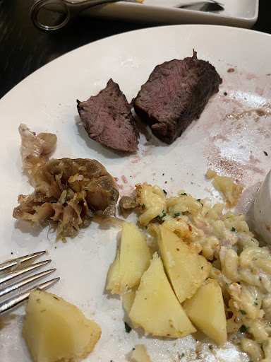 Things started to go wrong when the “filet mignon” arrived. It was two tiny skewers with minuscule pieces of filet sandwiched between large hunks of pork. When I queried this, the waiter explained that “filet mignon means different things” and that “in Europe, it often comes with bacon.” As someone who is from Europe and has travelled extensively across France and Italy — the very places where filet mignon originates — I can confidently say I’ve never seen filet mignon served this way, let alone with pork.