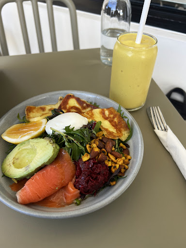Read moreI really enjoyed my meal here! Had the mushrooms with cauliflower puree, honeyed hazelnuts, buffalo mozzarella, sourdough with chorizo and also had the kumara rosti with whipped goats cheese, baba ganoush, rocket n prosciutto. Both were incredible and stand out. My favourite was the kumara rosti, I just loved the flavours of that dish I would really also like to try the fitness bowl and the pumpkin pie pancakes. Reason why I didn't give a 5 is because the service is ok, it's almost like the waitress was annoyed that they are as busy as they were. The guy waiter was much friendlier and actually seemed like he wanted to be there so kudos to him. We did however go inside and were ignored for ages by the wait staff before we were acknowledged even the barista seemed annoyed that we kind of looked/approached him seeing he was the closest to us. Hopefully next time it improves otherwise I would have to make it my last...