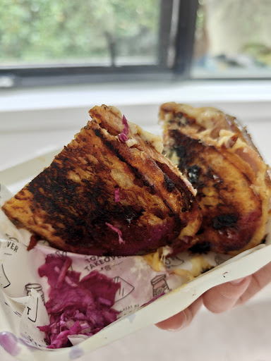 Read moreAs Covid-safe diners, we were pleased to see some tables and chairs set up streetside so we could try this place. The service was not particularly friendly or welcoming. Our coffees, his a flat white and mine an iced mocha, were good and served promptly, with our toasties close behind. He tried the pork belly toastie and found it a bit odd; he also didn't like the red cabbage garnish. I thought the garnish was a nice touch and ate both portions, though a good dill pickle would be even better. I enjoyed my mushroom truffle toastie, but the onions were left off. The silverware looked a little dirty. Despite these issues, we'd probably return if we were...