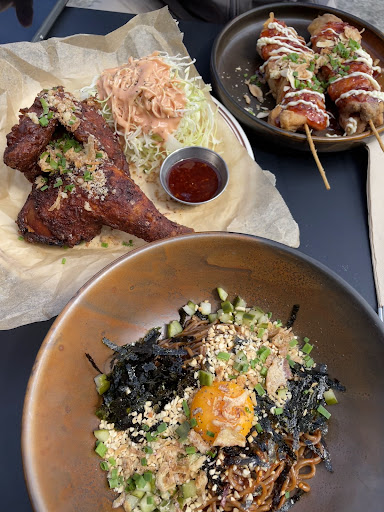 👅 Dak-kkochi w/sweet and spicy dressing $23 we almost opted to be boring and get the normal dak-kkochi but as soon as we saw the sauce … WELL 😍 they know how to cook their chooks cause these were super juicy 🍑 the sauce was sticky and messy but you know that means its gonna be finga lickin gud 😘 i did think the sauces started to taste the same but it was still nomz. topped with the OG kewpie mayo, crispy shallots and nuts; we were in heaven 🥳