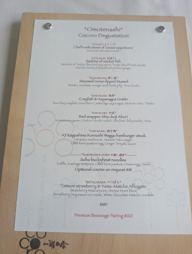 Read moreFine dining Japanese degustation is not something I expected in Auckland. Cocoro restaurant is a tiny little space off the main Ponsonby strip. The welcome is warm and genuine and is backed up by excellent service and superb food. In Japanese degustation, I expect the difference in a restaurant is in the quality of produce and this is second to none.