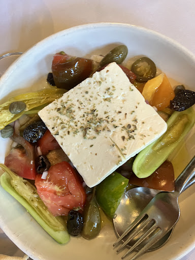 The Baked Saganaki was delicious, and Cloudy Bay Claims very yummy (loved the plethora of jalapeno slices) my partners Snapper was very good, very tasty fish and the baby vegetables divine. I had the Mafaidine Rabbit, I loved the pasta, the rabbit was tasty.