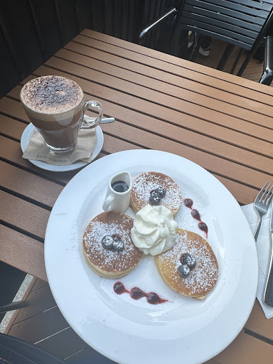 I ordered a mochaccino and pancakes with blueberries. The mochaccino was well-balanced, with a nice blend of chocolate and espresso, though it could have been a bit hotter. The pancakes, however, were a bit disappointing—they weren’t as fluffy as I expected and felt slightly dense. The blueberries and maple syrup added good flavor, but the texture of the pancakes could have been better.
