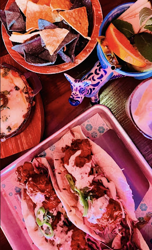 we made our way into the location, adorned with fairy lights and blasting authentic, traditional latinx music (bad bunny), with our maître d, matthew, leading the way into what we would soon discover was nothing short of an artisanal delight. as soon as myself and my throuple sank our behinds into the plush burgundy booth seating, we began our mouthwatering journey. the menu was filled with endless possibilities of nourishment, so much so we were unsure quite where to first embark, we had to keep requesting the attentive wait staff to return at a later time so we could fully yield to the wonders this establishment had to offer. once we finally came to a conclusion on what we would each be indulging in, the fabulous lauren took our order and set us off on our voyage of mexican delight.