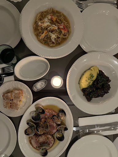 Four of us spent $380 on half dozen oyster, crudo, beef tongue and seafood cocktail for entrees, asparagus and confit potato squares for sides, king crab pasta, pork belly and clams and beef bourguignon and four drinks.