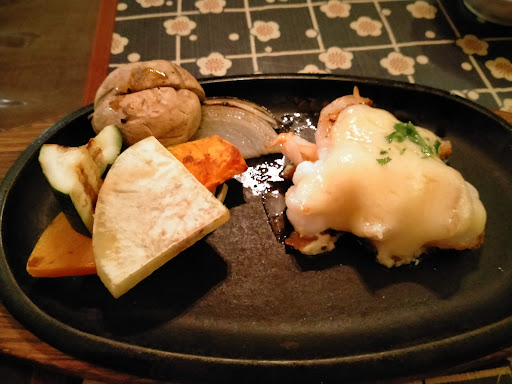 We had a variety of options like chicken thigh, sirloin steak, salmon, prawn, and squid. The meal began with a vegetable salad and grilled items like pumpkin, mushrooms, and prawns - everything was so delicious! For the mains, I chose sirloin steak (medium rare) and salmon, which were both excellent. The squid and chicken thigh ordered by others were equally amazing, and we all enjoyed our dishes. The portions were just right, leaving us fully satisfied. The lemon ice cream at the end was the perfect way to finish the meal.