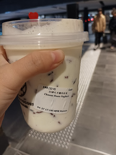 Read moreI ordered an original purple rice yoghurt drink with added cheese foam and it came with Oreo crust. I hate Oreos. And yes, I'm petty. (It took awhile cause it was pretty busy, so 3 stars. Probably just a small mistake, but still.😔) My first time to this yogost so idk if the Oreo crust comes with the cheese foam??? Kinda disappointed 😭