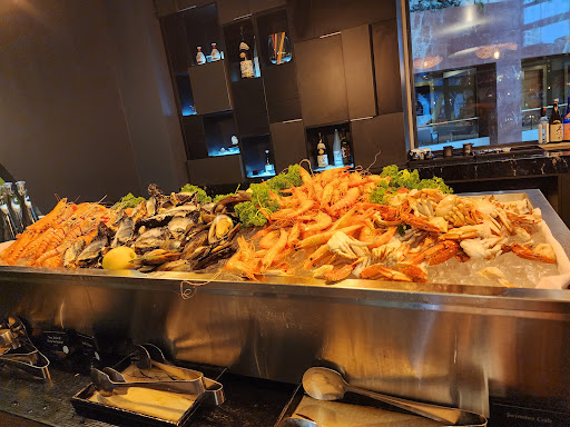 ● Seafood table - Steamed and raw seafood section full of crabs, prawns, scampi, crawfish, mussels and oyster.