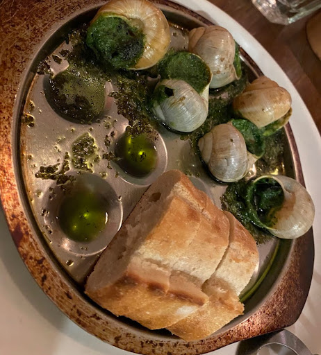 I ordered a tap beer, a half dozen escargot (baked snails), and the market fish (snapper) for my main course. My beer never arrived at all.