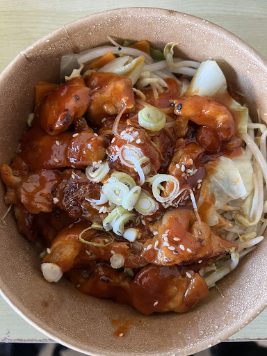 I ordered the Spicy chicken Donburi and vegetable rolls(pieces) through Ubereats.