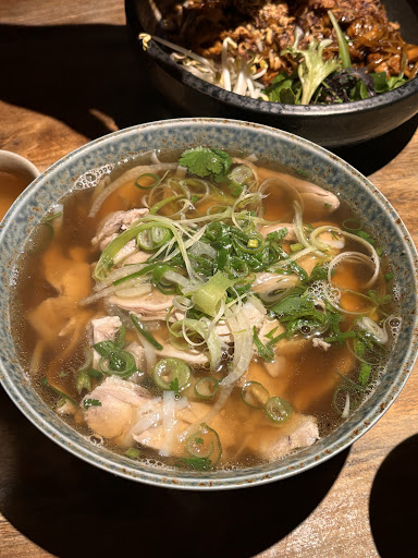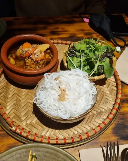 Read moreLocated on Parnell Road, The restaurant entrance is down some stairs from the main road, just keep an eye out for the signs and menu board. The interior looks quite nice, traditional but also quite modern with quite a lot of wood. A bit dim but quite a nice and comfortable atmosphere. The initial service was good, given a table and water and menus. It wasn't to hard to flag someone to take our order. They didn't check up much after ordering though, only topping up water when asked. The food had nice flavours. We had the summer rolls and the calamari chips to start off with. The summer rolls were nice with the dipping sauce but did have quite a bit of lettuce. The calamari chips were interesting, crispy and a little spicy in chip form. Dad had the Pho and the broth was a bit on the salty side. I had the bun cha and it didn't come out as I expected. An interesting presentation and the flavours were quite nice, although it was hard to tell if it was grilled since it didn't have that charry flavour. Also tried the pandan crepe roll for dessert. The crepe was really good but the dish was lacking the coconut flavour. A nice place for Vietnamese food but it did look a bit different than other places but the flavours...