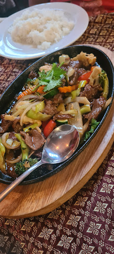 We ordered a Chicken Satay entree, tom yum soup, sizzling beef, green chicken curry, chicken cashew, masaman lamb.
