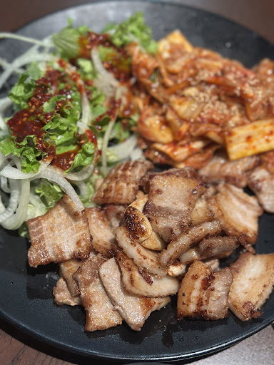 Now, let's talk about the star of the show: the Grilled Pork Belly (Samgyeopsal). It was absolutely incredible! The slices were thick-cut and had the perfect ratio of meat to fat, which meant they grilled up beautifully—crispy on the outside and incredibly juicy and tender on the inside. Wrapping a piece in a fresh lettuce leaf with a bit of ssamjang (the savory Korean dipping paste), some grilled garlic, and a kimchi slice was pure heaven. It's honestly some of the best pork belly I've had outside of Korea.