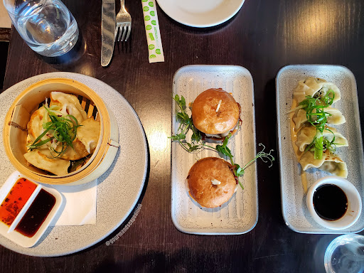 FOOD WE TRIED: Chicken and vegetable dumplings Prawn and chive Gyoza Arancini 55 day aged beef brisket sliders Seafood Risotto Spaghetti with mussels, snapper and prawns