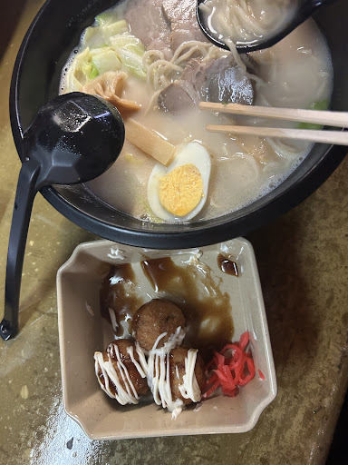 Read moreThe most disappointing aspect was the unpleasant taste of the food and the terrible services . First, the ramen – the broth had a faint flavor with an odd hint of instant noodle seasoning. It lacked the rich, hearty essence of authentic pork bone broth and seemed artificially concocted. Furthermore, the ramen's egg, which should ideally be a soft-boiled or runny yolk, was terribly overcooked, resulting in a very poor texture. Moving on to the takoyaki, it was evident they were reheated convenience items, not freshly made on-site. The octopus inside was tiny, and the texture was far from crisp; overall, the taste was extremely unsatisfying. Lastly, regarding the service, my companion and I had barely glanced at the menu when a waiter loudly demanded our order from behind, startling me. This lack of courtesy and impatience was quite off-putting. The restaurant lacked natural light, creating a rather gloomy atmosphere. All in all, I am highly dissatisfied with this...
