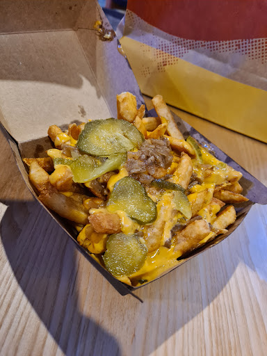 This place was recommended as a hidden gem in Auckland... And it sure is.The food in the pictures from left to right is the Royal big smoke burger,BBQ bacon fries(Medium) and the Famous castle burger. The portions were good,both burgers were tasty and the pickles etc on the burgers were fresh and generous in size. The fries,was real tasty with the smoky tasting bacon over it. A bonus is that one can see as a business they really are trying to be more environmentally conscious if one looks at their compostable cutlery and paper straws(the good quality ones,not the ones that get soggy after a few minutes). There isn't a lot of space to sit inside but funny enough half the seating was empty most of the time as most of the customers it seems pop in for a take away dinner.There is more seating available outside if you wish to sit outside. They are also wheelchair friendly which is great.There is a bathroom available (cannot comment on that as I did not check that out,sorry)I can imagine the bathroom would be pretty clean as the restaurant itself is also quite clean,as is the kitchen. One can see a large part of the kitchen aswell btw. Also saw a couple of uber eats pickups whilst there. I was there on a Saturday night,so one of the busier times I might think. All that considered the food was still ready in about 10 to 13 minutes,that gave me some time to check out the two arcade games (packed full of the old classics,hundreds of games). For a truely hidden gem i can really recommend Re burger!They will see my business...