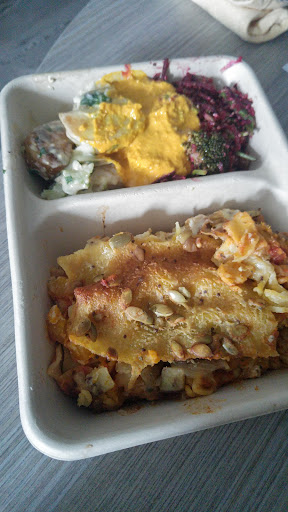 Day 2, hungry, still no idea where to eat in AKL for a dairy free veggie, we went back. My companion had a larger portion of 4 salads and I had the hot special of the day, one salad and more houmous.