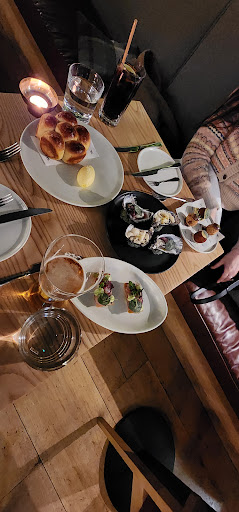 We started with an impressive set of appetizers: two crispy snacks that were fish and chips with sashimi inside the crispy coating, which was delightful. The bread with butter was amazing - you can judge a restaurant by its butter, and this one was exceptionally great. The four crispy balls were excellent, too. Lastly, the oysters were superb, with toppings that perfectly harmonized with the natural taste of the oysters, making them enormously satisfying.