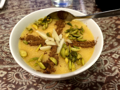 For dessert, ordered the Sholeh Zard. This dish is a “Persian Saffron rice pudding flavoured with rosewater”. Definitely quite unique and a deep dive in to the Persia flavor profile. I would recommend another dish if you’re not used to traditional Middle East flavors. Strong flavors of rosewater and cardamom. Still quite delicious if you have an adventurous palate not to mention hard to find anywhere else on the island.