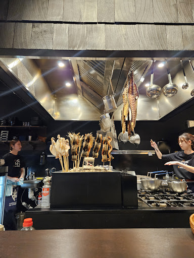 Cool music. We sat at the counter watching the chefs. They were very friendly and answered all our questions about the dishes and general.