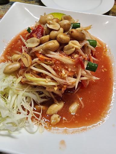 Som Thum Thai is a distinctive dish that is like a salad which is sour and spicy, cold, with crushed ingredients within it. This is the highlight dish of this place!! Very fresh and deliciously seasoned. Best I ever had compared to any other stores.