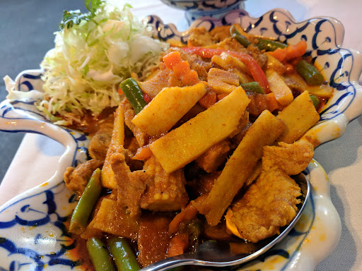 Have dined there and even thought food was okay...European Thai. We were one of two tables occupied and service was slow and inefficient. Tonight my husband went to get takeout. After ordering and waiting in the car for 30 minutes he went in to find out where his order was. The girl looked at him blankly and asked for his order again. Another 20 minutes passed before he got his order. After two similar experiences, we are wondering what that wait staff are on...not this planet for sure. Sad really, as this had the potential to be one of the several cafes we...