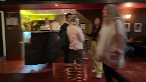 The vibe is dark and dingy, and not in that charming, underground kind of way—more like the “you might want to keep your shoes on in the bathroom” way. The foyer, the first place you encounter, is a bottleneck of awkward discomfort. With barely enough seats for a handful of people, everyone else ends up crammed together, anxiously shifting on tired feet while waiting for the show to start.
