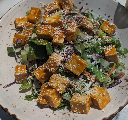 I ordered a Korean Tofu salad, but what I received did not include coriander or mint, despite the menu indicating that these ingredients were included. The menu description mentioned 'Thai-style dressings,' and I assumed coriander and mint would be included based on the photo displayed. This discrepancy feels like false advertising to me, and I am extremely disappointed with the experience.