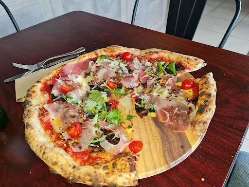 Classic authentic vibe of sitting at comfy outdoor patio style tables in the street for your meal reminds us of home, woodfire oven is always cranking, gives it that flame kissed perfection. Dough...