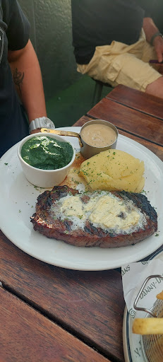 I then went for a beef burger and it was just how I love them. No lettuce making it taste all weird and tomato/beetroot bits slipping and sliding down my nice jumper. Just really good quality tasty meat, cheese beautiful sauce and fresh bun. With side of gorgeous fries I was so happy. Yes hubby in his unofficial role as steak reviewer for Google went for the steak with peppercorn sauce, mash and peas with bacon. Of course he had to have eggs added. "Damn" he declared "that was a great plate of food". People - this is a must visit! Great friendly staff, cheap drinks and food that puts some of those super spendy restaurants near them to utter shame. Love your work and we...