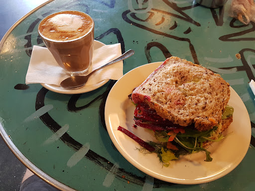 A quirky and cosy cafe, central to everything but not encroached on by the hustle and bustle of the centre of town. Reliably good (though expensive) coffee - Havana beans, though the food is the real star here. The menu changes daily and you will need to inspect the counter to see what is available. There's a good variety of sandwiches, muffins, cakes, samosas, cookies, salads, filos and other sweet or savoury items, made on premises to unique recipes. The gluten free/dairy free/vegan options are clearly labelled and the prices are quite reasonable. The space also doubles as an art exhibition area - the displayed works are for sale, providing visibility for local artists. Downsides: the inside space is tiny, so if it's busy you might have a hard time getting seated (they do have takeaway) and maximum at one table is 4 people. The queue can be long at busy times. There's no table service. The outside tables can be windy and noisy. Still, this is one of the cafes that shows the real Wellington and...