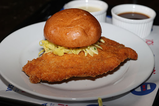 This is a quaint little pub in the heart of Wellington. We parked down by the water front but you could find a park closer if you know the city better. We booked for lunch and the place was pretty quiet but we were served by a young lady who said if we didn't like the table we could sit anywhere. We ordered drinks and while we knew what we were going to order, perused then. It was Wellington on a plate month so it would be rude not to try the Schnitzel Von Crumb burger. Liked the Beverly Cleary reference. We asked how big the burger was and our waitress said it is a struggle to get through. Luckily they allow sharing so the girls shared there's while I gobbled down a whole one. We ordered a basket of fries to share. The burgers were delicious. Very crisp Crumb on the chicken schnitzel. Served with both a gravy and a cheesy white sauce that complimented the filling perfectly. Would happily visit again as the food...