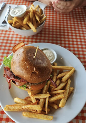 Read moreThere's parking directly opposite if you are lucky. The waiter greeted us as we walked in and took us to a table, providing menus. It was too windy today for the outside tables but there is that option. Because I wear hearing aids I struggled to hear him speak behind his mask above the chatter of the other diners. The menu had a good range of choices plus there were muffins and sandwiches in a cabinet. The teapot had an insert for the English Breakfast tea-leaves which was nice to see rather than a teabag. The iced coffee looked and tasted yummy. There was room between the tables to pull out chairs without bumping others and to walk to the Restroom which had a nice decorative accent in one corner. Plates were cleared away without us feeling rushed. Stop and admire the view of the water as you leave or wander into the historic Evans Bay boat slip next door and read the panels...
