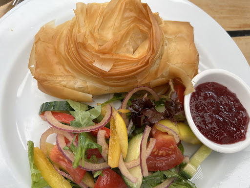 Read moreThey have a wide variety of delicious looking cabinet food. Quite hard to choose as they all look good. They also have menus to choose from. I ordered a filo filled with chicken, camembert and cranberry from the cabinet with a side salad which was delicious and they presented it very nicely. I also had a very good looking fruit tart as a dessert with a Latte. Absolutely delicious! My friends ordered a Veggie breakfast, Salmon scrambled eggs and Creamy garlic mushrooms. Their toasts came separately. The food all looked really good and they all enjoyed their food. By the time when we went to order for another drink at the cashier about 12:30pm (on Saturday), there was a massive queue. It took a while to order but the staff were all friendly and their food comes out timely. A pet friendly place. So I saw some well mannered cute doggies coming in and out there. We’d certainly...