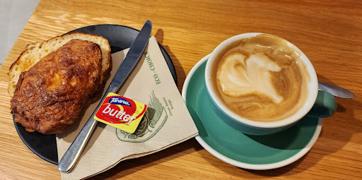 Read moreCoffee is awesome and very reasonably priced - great to get local business discount. Arguably the best cheese scones in Wellington and the best cheese scone I've ever had. Very popular cafe at the base of my work building. Always busy and vibey. Lovely layout and decor. Can be a bit cold in there with all the glass windows. Service is generally...