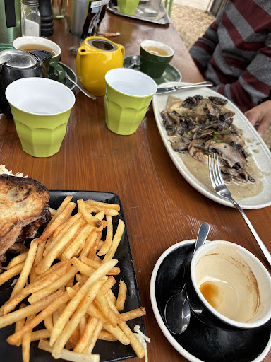 Read moreWe were met with a very friendly staff member who told us to pick a seat, and that he would bring a bottle of water and glasses over and a high chair for our little one. We sat outside, was a lovely day weather wise. Very busy as it was lunch time. We had a bowl of fries and a plate of crepes, and milkshakes. Our orders came fairly quick considering how busy they were. The fries were excellent but the crepe was disappointing, you're not getting what you pay for! The milkshakes tasted like a diluted cream sort (cheap!), again not getting the quality you pay for. There are signs everywhere asking people not to feed the ducks and sparrows, which is all good and well, but there were so many tables that were left as is when the customers left, for so long, that the sparrows had their fill before it finally got cleared away. Makes the signs a bit redundant. There were people with their dogs there too, which is nice if the dogs are well-behaved and leashed (which they were) but I wonder what the policy of the café is if there are rowdy dogs, or children who have phobias of dogs? I think it may pay to set up a separate 'doggy cafe' area like The Chocolate Fish have done. We also never received our bottle of water and only once our orders arrived and we'd started tucking in did staff ask if we wanted a highchair for bubs. Not saying this place is good or bad as it has its pros and cons, but there is definitely room for...