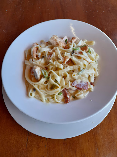 The food quality has dropped since change of owners. My scotch fillet steak looked and tasted like it was baked, fried eggs still had uncooked white, salad cibsisted of leafy greens, capsicum, and onion. Not even basic tomato was added. My son ordered meal at same time as us, but with different bar person, I advised the person taking his order it was same table as mine, as i was ordering right next to him. 40mins after I got mine, sons were still not there. A woman came over and acted like it was our fault saying "people ordered before my son" I said no they did not. Then she waved her hands at rest of restaurant and said you can see were busy. They got a refund. No apology nothing. Shame as a month prior lunch was ok, and other reviews said was good, so we decided to chance it. They seated 6 of us at 2 tables pushed together thay was realistically for 4. Not a good...