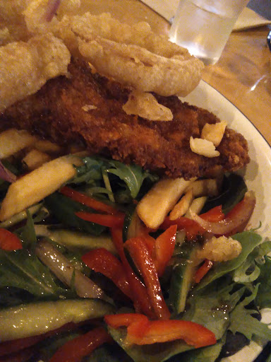 Buttermilk Chicken The chicken was served in very small slithers, overwhelmed by an excessive coating of batter. Unfortunately, the batter carried little seasoning, resulting in an unbalanced ratio of coating to meat and a lack of depth in flavour.